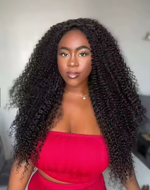 Simidola Glueless Afro Curly 3 In 1 Half Wig Drawstring Band Wear Go Wig Invisible Hairline