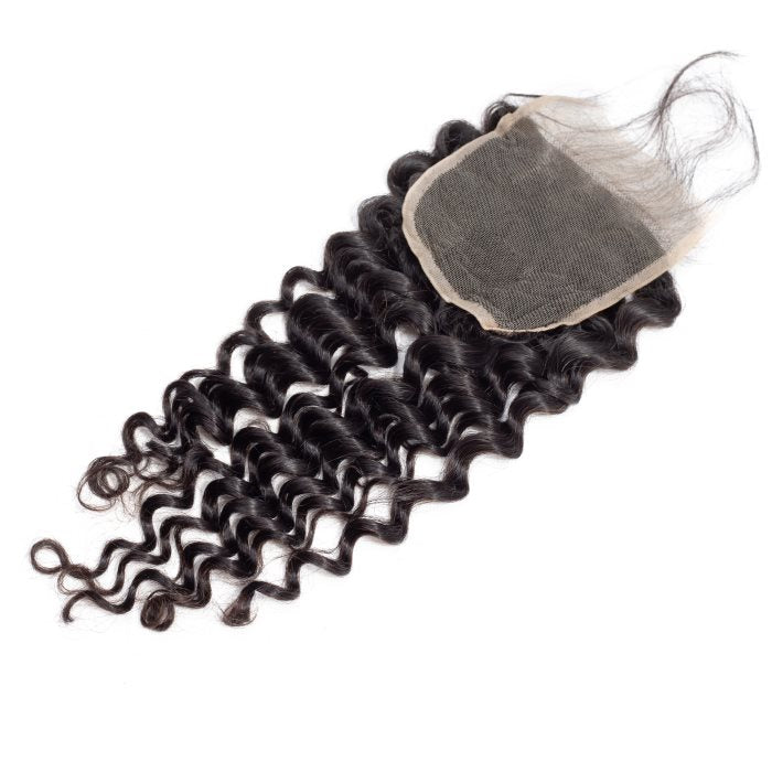 Simidola 3Pcs Deep Wave Bundles with 4x4 Closure 10A Grade 100% Human Virgin Hair